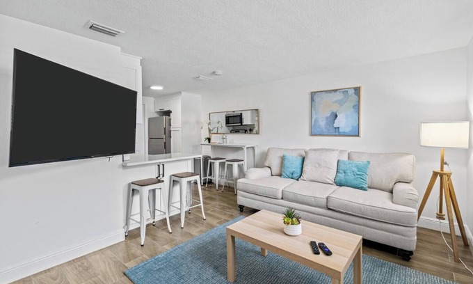 Single-level unit features 2 bedrooms, 1 full bathroom, and a bright open layout that’s great for couples, small families, or work travelers.