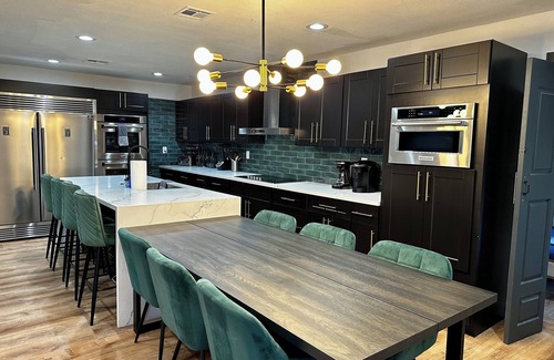 🦚The Peacock Inn LV - 8 Bdr 4 Bth 14 Beds, Hi Speed WiFi has 8 Bedrooms , 4 Bathrooms, and max occupancy of 30 people. The minimum rental for this property is 1 nights, but this can change depending on the season you plan on staying. Previous guests have given good rated it, and VRBO labeled it a top-rated House because of the excellent services rendered by the owner or manager of this House, and has consistently provided great experiences for their guests. Most families or guests that use it recommend it to their friends and some of them are repeat guests. House has a friendly neighborhood, and the North Las Vegas has interesting places to visit. If you want to learn more about the House in North Las Vegas, such as places to visit and things to do nearby, you can check below to learn more.