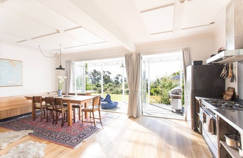 A cluster of buildings forms the heart of the farmlet: the old farm house (where we live), various barns and outbuildings and the lodge, which can accommodate up to 16 guests. (Note: Book our Shearer's Cottage to accommodate up to 4 more guests!) With its large sunny verandah, garden area and associated 'hay barn', the lodge is also a great place for small events , corporate retreats and family get-togethers.