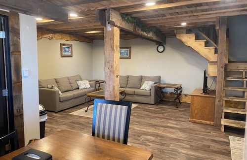 Pedaler's Rest Retreat, located at the campground, offers a comfortable and unique getaway with 3 queen beds and 2 twin beds, accommodating up to 8 guests. This lakeside tiny home features a full kitchen, utilities, Wi-Fi, and smart TVs, with off-street parking. Decorated with collector bikes, it adds charm and character to the space. Perfect for small groups seeking a cozy and memorable retreat in a scenic, active setting.