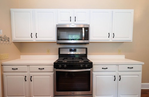 Sit & rock on the front porch, grill out on the propane grill, make meals in the stocked kitchen, or walk downtown to restaurants, bars, & shops. Covered parking is offered in the connected carport.