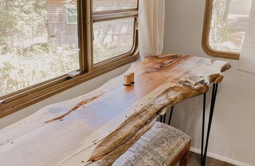 provides you with a loveseat perfect for two, a live edge dining area , smart tv and games.