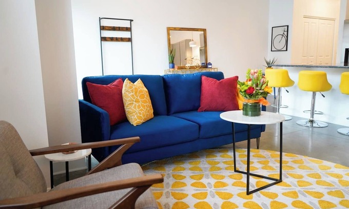 Experience urban living at its finest in this stunning 2BR loft near Massachusetts St. in Lawrence, KS. High ceilings, polished concrete floors, & natural light. Steps from restaurants, shops & nightlife. Don't miss this one-of-a-kind space in the Lawrence Cultural District. Brand new 2 bedroom/2 bathroom loft with 11 ft ceilings and polished concrete floors. This loft is cheerful with a color pallete drawn from local inspiration. Soft designs and low lighting throughout makes this spot warm and inviting. Perfect for a bridal party as Cider Gallery is directly across the street. Guests will have access to the entire loft. This loft in Lawrence, Kansas offers the perfect blend of city living and natural beauty. Located just minutes from the heart of downtown, this address provides easy access to all the best restaurants, shops, and entertainment the city has to offer including Lawrence Beer Company and the Cider Gallery directly across the street. At the same time, it is surrounded by lush greenery and nature, providing a peaceful retreat from the hustle and bustle of the city. The location is also conveniently close to the University of Kansas, making it an ideal spot for students, faculty, and staff. With a variety of housing options available, the loft is the perfect place to stay. This loft offers a variety of options for getting around the city. For those who prefer to drive, there is easy access to major roads and highways, with plenty of street parking available. The city also offers a reliable public bus system which makes it easy to get around Lawrence without a car. For those who prefer to bike or walk, the area is bike-friendly and many destinations are within walking distance. Additionally, many ride-sharing services such as Uber and Lyft are available in Lawrence. With so many options, getting around from the loft is a breeze. All natural shampoo/conditioner and body wash in each bathroom. Large closets provide ample spaces for all of your belongings.