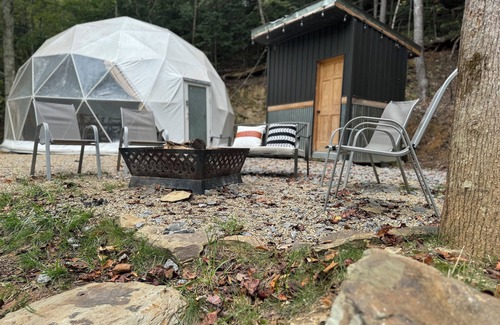 Spacious dome furnished with hotel quality beds & linens, kitchenette, & table. A private bathhouse with hot shower sink & flush toilet allows for complete comfort with a wild side. Wanderlust Woods is nestled on the edge of the stunning Smoky Mountains & minutes from rafting & hiking and skip the traffic to Gatlinburg by going the back way for a day trip