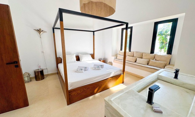 Best-rates for the Eastern Hammamet villa starts from $1,457 per night with includes Air Conditioner, Parking, Pool, TV, Private Pool, Balcony/Terrace, Security/Safety, Kitchen, Bedding/Linens, Fireplace/Heating, Child Friendly, Internet, Laundry with all other amenities. Perfect for Weddings is committed to ensuring every guest experiences a comfortable and extraordinary stay, whether planning a romantic getaway, a honeymoon, a pet-friendly stay, or celebrating with the entire wedding party.