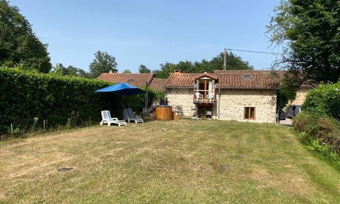Stunning Couple's Retreat - situated in a peaceful and tranquil setting surrounded by 7 and a half acres of woodland and fields, this beautiful one bedroomed gite provides the perfect setting for a romantic get away. This traditional Perigord Vert accommodation comprises modern living, a log fired hot-tub and a secluded and enclosed garden - just in case you wish for your 4 legged friend to join you. A range of beautiful woodland walks are accessible from your front door.