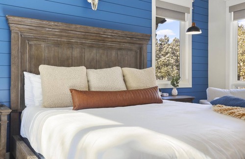 Juniper Pines Vacation Rental is your family-friendly oasis with 9 cozy bedrooms and 7.5 bathrooms across a 4500 sq ft and 1200 sq ft pair of cabins, perfect for families/teams/groups to come together and make beautiful memories.