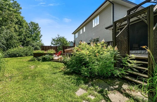 Step outside into a true sanctuary: a large, private backyard surrounded by greenery, featuring a firepit, a charming patio, and a covered veranda where mornings stretch peacefully and summer evenings linger.