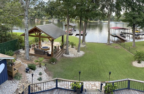 Beautiful home on private Lake Charmaine (aka Himmerville). This retreat is perfect for kids and family, or just adult friends who want to relax and have fun on the lake. The outdoor space is unmatched as you relax on a covered porch, Gazebo, sun deck, or up close and personal with the water on the dock. 2 dining areas include both indoors and out, and also a second floor covered deck with an incredible view! Like fire?….. this property has an outdoor gas fire table to enjoy the night away.