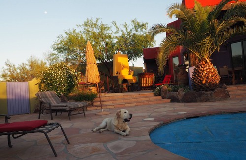 Enjoy romantic, starry Arizona nights from the pool, patio or around the outside bee hive fireplace. Great outside dining area. Most enjoyable. Wonderful for entertaining. Wonderful for relaxing. Wonderful for private sunbathing.