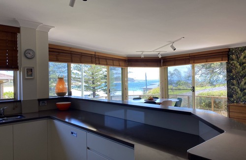 This home is an ideal place for a holiday. It has three bedrooms, two with ocean views, ensuite to main. The elegant and modern kitchen has high quality appliances, with every utensil a cook might need. There are panoramic ocean views from the sunny lounge room and kitchen, with wrap around balcony to sit and watch the waves roll in.