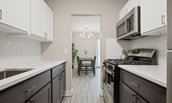 As soon as you step foot in this gorgeous apartment, you're greeted by the beautiful yet highly comfortable open-concept living area, elegantly decorated to complement the tranquil and friendly school district location.