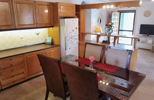 The barbeque area is also ideal to enjoy your meal or even a late drink after a long day at the beach where you feel like staying home , with the lights making a wonderful atmosphere.
