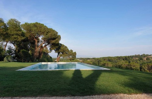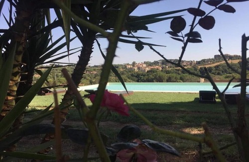 A newly renovated country villa-farmhouse completely immersed in the greenery of about 5 hectares with a swimming pool for exclusive use. The villa is on two levels each with its own independent entrance. The lower floor consists of a large living room with fireplace, a fully equipped kitchen, a double bedroom and a smaller one with a bunk bed with the possibility of an extra bed and two complete bathrooms one with a bathtub and one with shower.