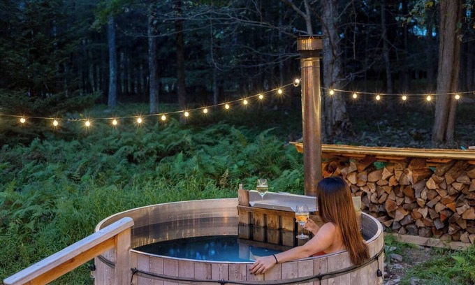 Welcome to the Pine Cabin! Relax under the stars in your private wood-fired hot tub or roast s’mores around the firepit at this cozy, elegant, and stylish retreat. Nestled in the heart of the Pocono Mountains, The Pine Cabin seamlessly blends modern amenities with rustic charm. Conveniently located for a wide range of activities and just a short drive from NYC or Philadelphia, it’s the perfect spot for both adventure seekers and those looking to unwind and rejuvenate.