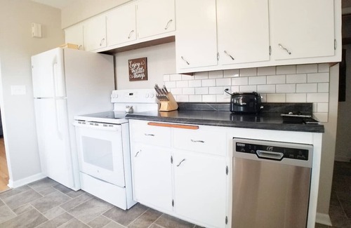 Entire side of a freshly renovated Duplex including a garage. 860 Sq. Ft. of space. Guests have full access to the bedrooms, kitchen/dining room, bathroom, living room, laundry room/basement, and driveway.