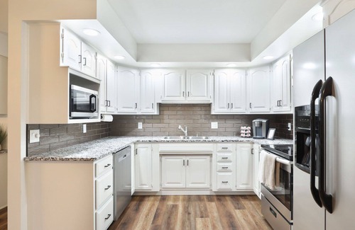 Our home includes 1 king bed, 1 queen bed, and 2 twin beds. Two full baths accommodate the home with a full kitchen and patio