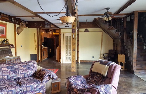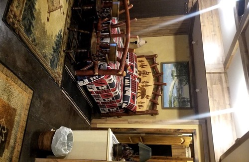The Pinecone Room is now open, in addition to the Bear Hug Room at Meadowbrook! Featuring 2 queen size beds and sitting area, along with it's own private bathroom. Access to the full kitchen, large living room, dining room, Bobcat office and laundry room. The entire downstairs is dedicated to guests only. Creatively decorated in Adirondack theme, each space is unique. Outdoor firepit and 9 hole golf course with discounted passes for our guests. Free wifi. Complimentary toiletries, coffee/tea, condiments.