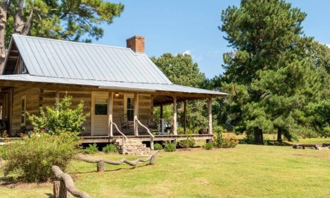 Experience rural West Tennessee in an original log cabin on a berry farm. The home is part of Green Frog Farm Cabins, a settlement of restored historic buildings.