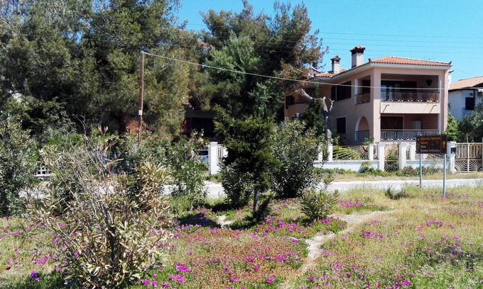 A calm and relaxed holiday in a 20 year old apartment, 10 meters from the beach, equipped with all modern comforts, located on a peaceful countryside at the most quiet location of the breathtaking turquoise beach of Toroni: nothing interferes the view of the fine golden sandy beach and the crystal clear waters in the front and of the green wooded hills in the back. Thanks to its bio-climatic construction, it stays cool even on the hottest days of summer.