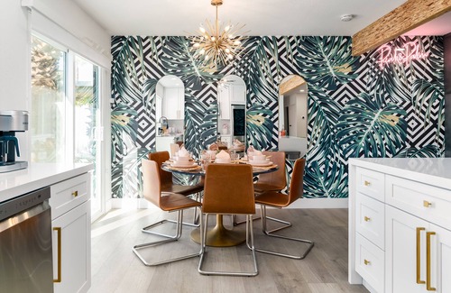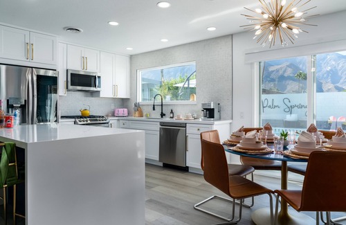 This newly updated 4 bedroom, 2 bathroom California dreaming getaway is styled with our most chic guest in mind. Indoors, you'll find a great open-concept featuring a contemporary kitchen with quartz countertops, a full suite of all new stainless-steel appliances, island top bar, and chic mid-century modern dining area. Prepare your favorite dishes in Caraway cooking ware and set the most gorgeous tablescape indoor or outdoor with designated well-curated dishware.