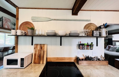 "Modern Eclectic with a Nautical tone" - Two story stilt home that offers a full kitchen stuffed with all the essentials, indoor laundry, full size kitchen appliances, and all the creature comforts during your stay!