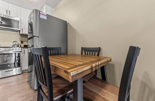 Rev up your mornings with our Keurig coffee station and cook meals in a modern kitchen with stainless steel appliances.
