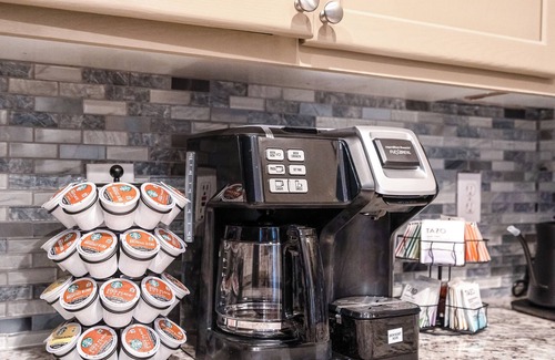 Downstairs has a two living rooms, the entry living room has a comfortable sofa that can be used as a pullout bed. This space also has an office desk if needed for work purposes. This space also leads to the main living room, where you can relax and watch some TV in front of the fireplace. The living room TV has Xfinity TV, Netflix, Amazon Video, HBO Max, Peacock, Disney Plus, & Hulu.