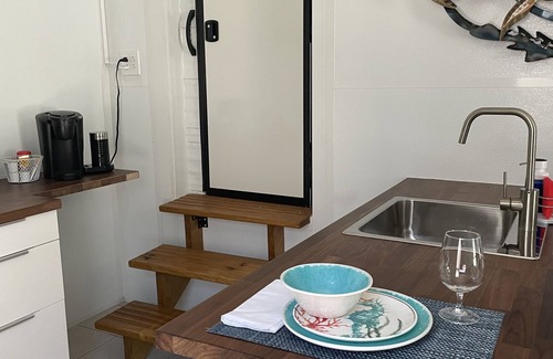 Vacation in paradise! Enjoy your stay in this lovely new Recreational Vehicle with extended A/C'd sunroom. This beautifully decorated R/V sleeps 6 in the two bedrooms with queen size beds. Modern full size kitchen fitted with flatware, utensils, cutlery, glasses, pots and pans, everything you will needed to create your fabulous meals. Outside you will find a BBQ area with a picnic table and four Adirondack chairs for relaxing in the sun or under the star lit sky.