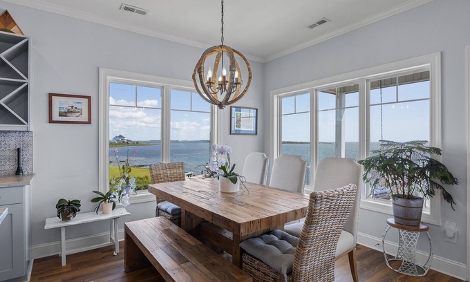 The Point at Marshallberg-Waterfront Home is located in Marshallberg. The Point at Marshallberg-Waterfront Home provides accommodation, featuring Pet Friendly, Fireplace/Heating, Child Friendly, among other amenities. This House features Pet Friendly, Fireplace/Heating, Child Friendly, to make your stay a comfortable one.