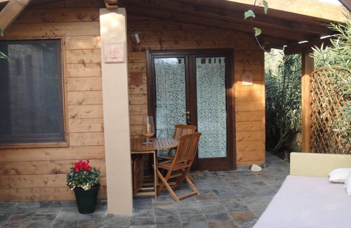 The Melograno is a BIO-HOUSE built entirely of wood, with natural materials, comfortable, quiet, with fixtures and fittings with 2 bedrooms, bathroom, living room and kitchen, veranda with outdoor table in the green of our garden a few meters from the pool, gazebo, deck, barbecue, suitable for couples or families to relax or starting point for discovering the beauty of this area. Just minutes away are the beaches, lake, amusement park, Acquafan, hiking paths of artistic historical interest, archaeological sites, spas. Rome in 30 minutes. For those who want the ultimate in relaxation you can treat yourself to magical moments in the wellness cottage where is the turkish bath, jacuzzi, multi-function shower or get pampered by experts who will advise the most suitable massage.