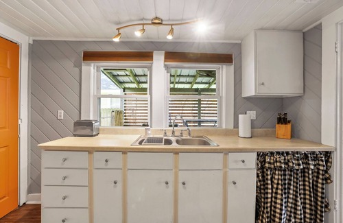 This quaint little cottage was built in 1964 in Ponchatoula, Louisiana. Cook in the retro kitchen surrounded by the original built-in shelving nooks.