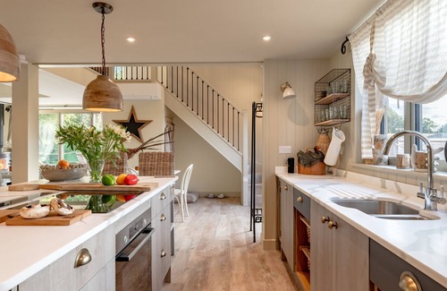 With its idyllic location next to a large pond, this five-star accommodation is a memorable spot for a group trip within the pretty Suffolk countryside. It’s located within a gorgeous 1500-acre estate featuring stunning countryside vistas and lush green fields, so you can kick off each day with a peaceful stroll. With space for ten guests over its five bedrooms, this dwelling is perfect for a holiday with extended family or a celebratory trip among good friends.