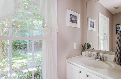 MASTER BATHROOM (main floor) - Located off master bedroom. Large jacuzzi tub, shower, bubble bath, soap, shampoo, and conditioner all provided.