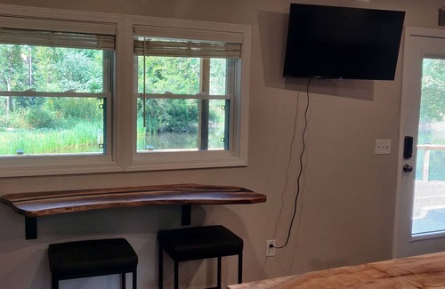 Talk about unique... a 1 acre pond is feet away and full of fish. A tandem kayak is available however there is no swimming allowed. Plenty of visiting birds, squirrels and other animals may say hello. Cozy house with a full kitchen and peaceful covered front porch to chill on. Gas grill out there as well. Feel like your in the mountains while still a short 10 minute drive from Hickory. Come see the Pond House!