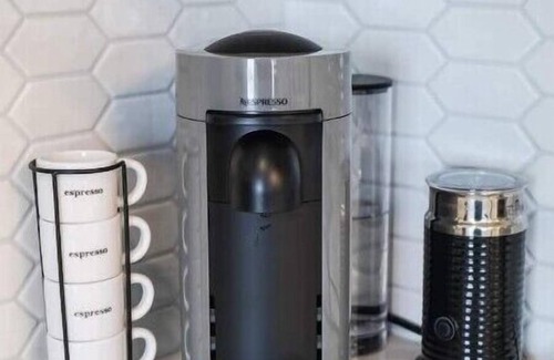 A fully stocked kitchen with refrigerator, range, microwave, Nespresso machine, coffee maker and cooking utensils. The basement kitchen as well is fully furnished.