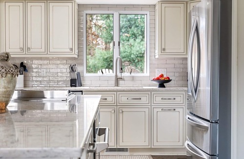 The fully equipped kitchen is perfect for preparing meals throughout your stay, whether you're cooking breakfast or hosting dinner with friends.