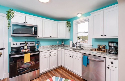 KITCHEN: stove, fridge, sink, microwave, dishwasher, toaster, electric tea kettle, coffee maker (traditional drip), Keurig