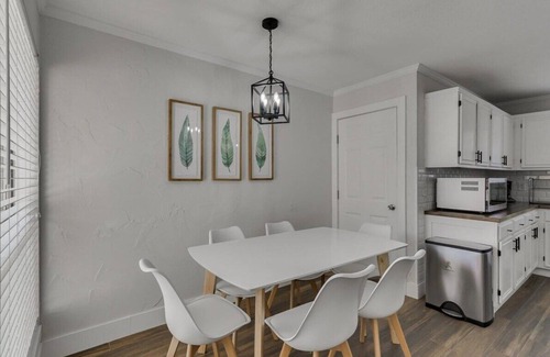 You’ll definitely want some popcorn to enjoy with your movies, so head on into your spacious and open kitchen. Beautifully updated, it features white cabinets, butcher block counters, and stainless-steel appliances. You’ll have a great time cooking up a fresh meal in here as it comes fully equipped with everything you’ll need. Enjoy your meals in the stunningly decorated dining area right next to the kitchen.