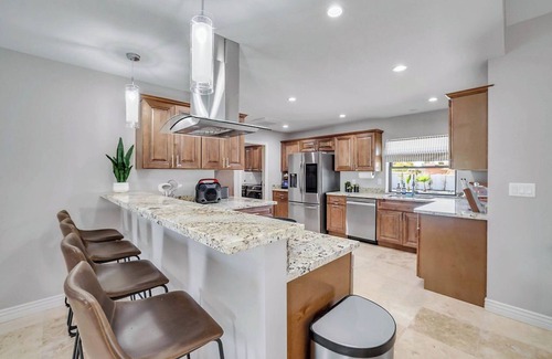 - Fully loaded kitchen Smart Refrigerator, Ice Dispenser, Microwave, Oven, Blender, Stove, Keurig Coffee Maker, Dishwasher, Water Dispenser