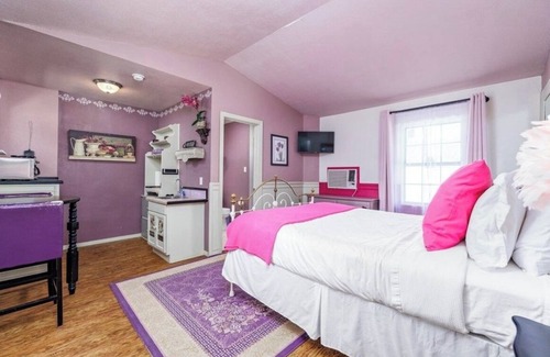 Come stay in the quaint town of Christoval, TX and enjoy the peaceful South Concho River, walk our charming Main Street to one of the several local businesses, and relax on your private patio overlooking our quiet grounds. The Prickly Pear Room features a playful & feminine pink color pallet, queen bed with 100% ring spun cotton sheets, a kitchenette, and private bathroom.