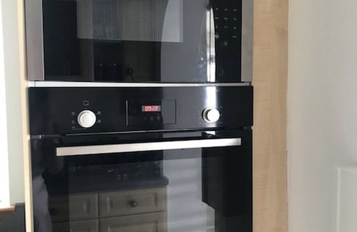 The modern kitchen has built-in quality appliances, and the new bathroom has an extra large shower and a deep modern bath for guests.