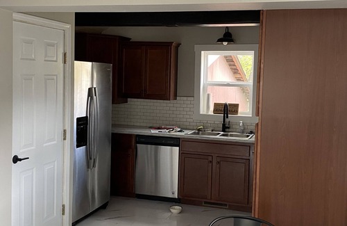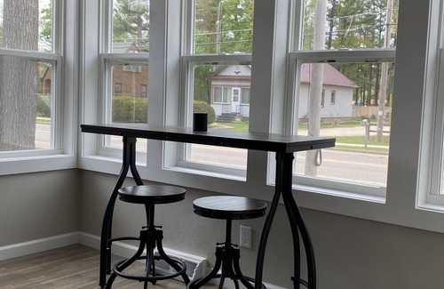 Come and stay at this newly renovated home in downtown King near the beautiful Chain O’Lakes. It has 2 bedrooms and a bunk room and comfortably sleeps 8-10 guests. The home is just a block from Clearwater Harbor and a short 2 minute drive to the boat launch on Taylor Lake. There is a queen sized bed in the main level bedroom, a full bathroom, and living room. Upstairs is a king sized bed and futon in one bedroom, a bunk room with two queens with fulls above a bunk beds, and a full bathroom with a tile shower. Some nights can be a little louder being on the Main Street but each room has a sound machine and blinds. Bedding and Sheets are provided for your stay however bathroom products and bath towels should be brought along for your trip.