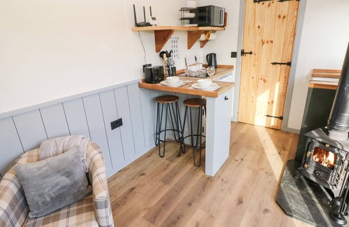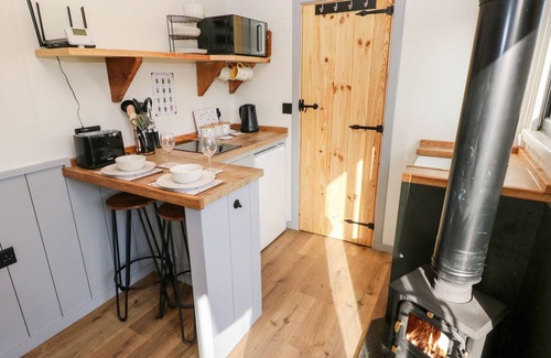 The living areas in this single-storey shepherd's hut consists of a studio-style layout with kitchenette, dining area, and sitting area with a combi microwave/oven, two-ring halogen hob, fridge, Smart TV, woodburning stove, and a king-size bed. There's also a shower room. Outside there is a private decked area with furniture, a shared lawned area, and off-road parking for one car. Park up to the front of the plot and travel down through the shared lawn, enjoying your rural position. Within 1.2 miles you will find a shop and a pub and please note, this is a smoke-free property. One well behaved dog welcome but must be kept on the lead and under control as there are animals in the vicinity. WiFi, fuel, power, bed linen and towels are all included in the price. The Queen Bee is a wonderful escape for a romantic break to Pembrokeshire. Note: There are steps to the exterior of the property.