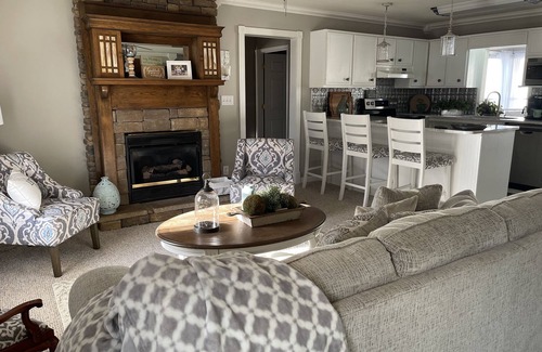 There is a free standing large wooden garage behind our home with a finished apartment. When our home is being rented out, my husband Dave and I stay in the apartment. We are away often, so we may not be in the apartment during your stay.