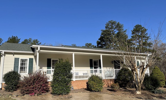 We are right outside the city limits of High Point. Our home sits on 2 acres on a private drive. The patio and front porch make it very nice to enjoy your morning coffee as the sun comes up and a glass of wine while the sun goes down! You will find that most areas of shopping and restaurants are with 4-5 miles! High Point University is exactly 4 miles..Downtown High Point is 3 miles from our Home.