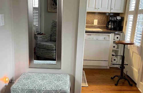 This is a rare find! A charming villa located in the heart of historic district of Charleston on a peaceful and quiet street. Private enclose beautifully landscaped courtyard. Minutes walk to the college of Charleston, Charleston's King Street culinary excellence, Meeting street restaurants, shopping, the arts and all the splendors of historic Downtown Charleston. The location is central and does not require a car, however, we have a private parking space (suited for regular sized vehicles-not large trucks) next to the private entrance. 400 sq. ft. garden patio, water fountain, wet bar, ice maker, & electric grill.