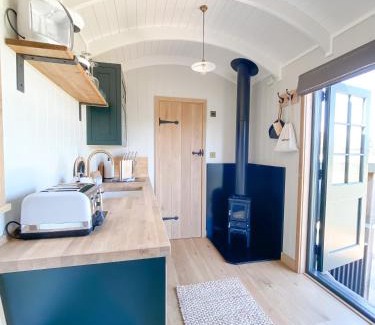 Offering a garden, The Rabbit Warren Shepherd Hut provides accommodations in Ketton. This property offers access to a patio and free private parking. On clear days, guests can head outside to enjoy the apartment's outdoor fireplace. With free Wifi, this 1-bedroom apartment offers a flat-screen TV and a kitchenette with a microwave and toaster. Towels and bed linen are offered in the apartment. There's also a seating area and a fireplace. Outdoor play equipment is also available at the apartment, while guests can also relax on the sun terrace. Leicester Train Station is 28 miles from The Rabbit Warren Shepherd Hut, while Belgrave Road is 28 miles from the property. The nearest airport is East Midlands Airport, 47 miles from the accommodation.