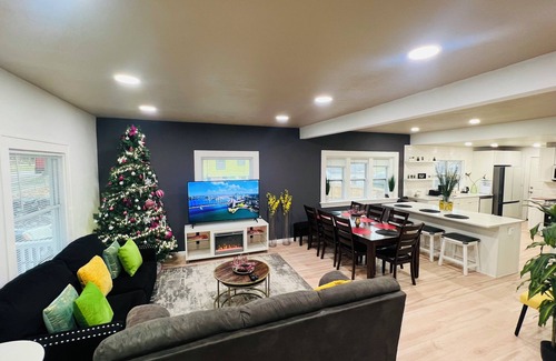 The Rainbow Lodge, 2.5 miles away from Downtown Des Moines, Stylish Home with everything you need to make your stay epic and unforgettable. You will find 4 bedrooms and 2 bathrooms, Large a living room w/a Smart TV and more.