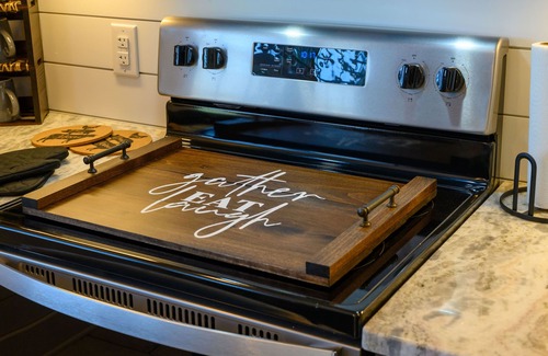 Your stay at The Ranch offers a delightful array of amenities designed to enhance your experience. With three beautifully furnished bedrooms and 1.5 baths, you and your wedding party can enjoy spacious accommodations full of eye-catching décor, much of which is handmade by your attentive host. Reconnect and unwind in the cozy oak wooden den adorned with a natural gas fireplace or relax with a glass of wine from your complimentary bottle while watching your favorite shows on the flat-screen TV. Additionally, you'll appreciate the pet-friendly policy, private parking, and essential items provided for your comfort, making this a true home away from home.